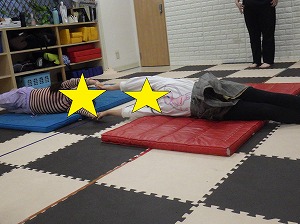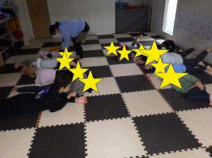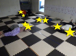 静の時間は寝たふり競争をしました。