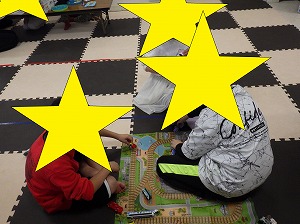 自由遊びでは、ニューブロックで作品を作ったり・・・おままごとをしたり・・・折り紙をしたり・・・車の絵本やカードを見たお友だちもいましたよ✨
