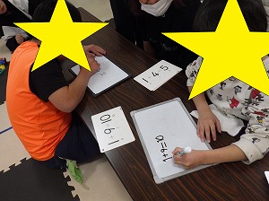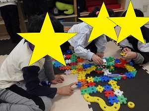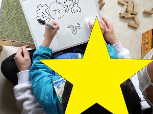 自由遊びでは、ホワイトボードに文字を書いてクイズをしたり・・・ニューブロックで作品を作ったり・・・絵本を読んだり・・・UNOをしたお友だちもいましたよ✨