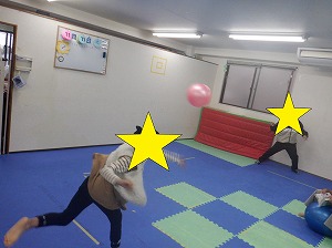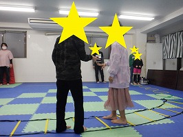 ネコかな?ネズミかな?指示をよく聞いて相手を追いかけます。たくさん走って疲れたけど楽しかったね☆