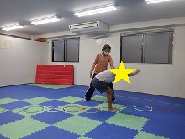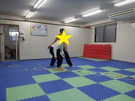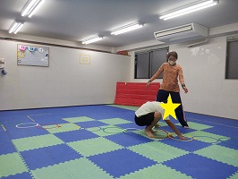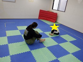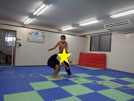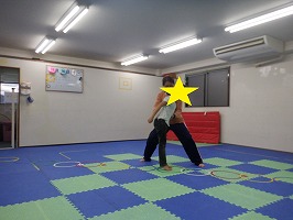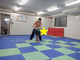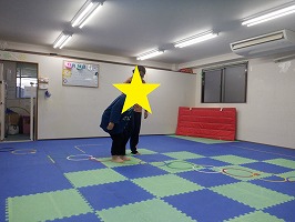 両膝をくっつけて、印の上を跳ぶとまっすぐ上に向かって跳ぶ事が出来ます。
