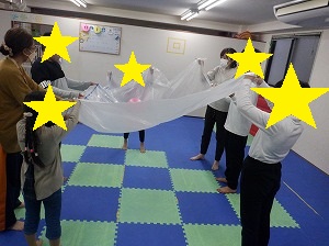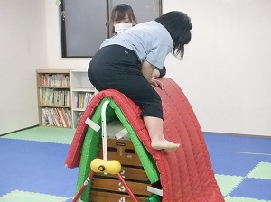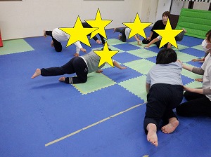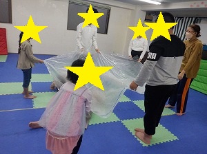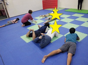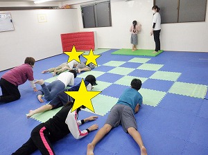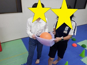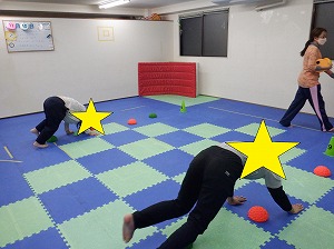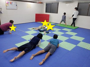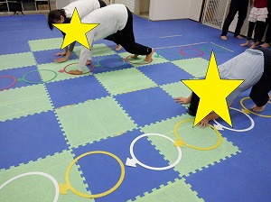 運動あそびも行っているレスキュー隊ですが、体が宙に浮いた状態で行うのは、難しかったですね!