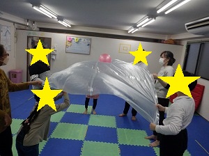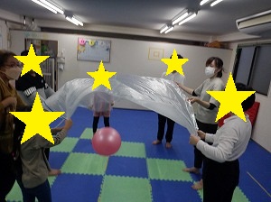 ボールが落ちないように、ビニールを上下させましょう(^O^)/