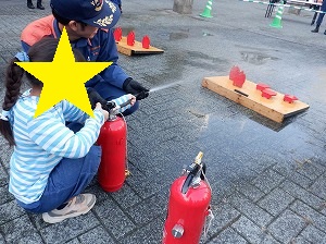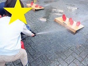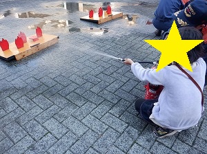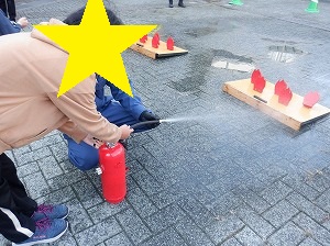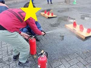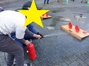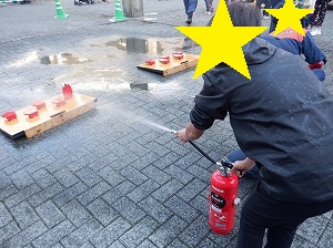 消火器の使い方を教えていただき、上手に放水するとができました(^O^)/