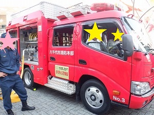 実際に消防車に乗って、写真撮影をさせていただきました(^O^)/