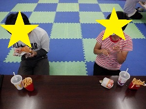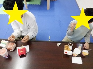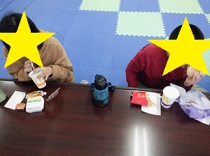 今日の昼食は、「マクドナルド」!教室に戻ったらみんなで食べましょう!