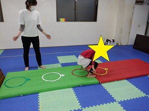 フープから出ない様に、ゆっくりとすすんでいきます。