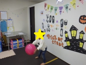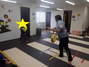 ハロウィンサーキット一種目目は、バケツボール入れ!