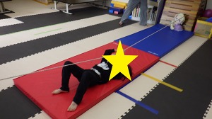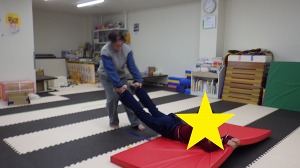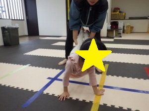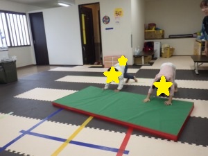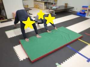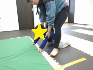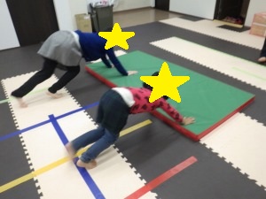 ぞうきんに見立てたマットに両手を付きおしりを上げて進みます。