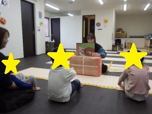 水分補給をして、紙芝居の読み聞かせを行いました。