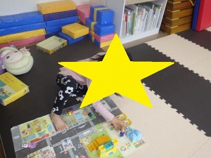 手洗いうがいをしたら自由遊びの時間です。