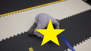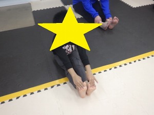 両手は大きくパーで床に付けます。