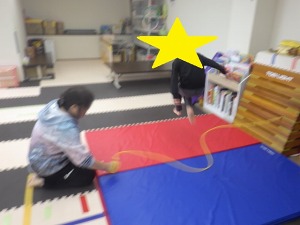 二種目目は足つぼマット&トランポリン的あて!