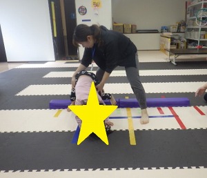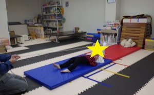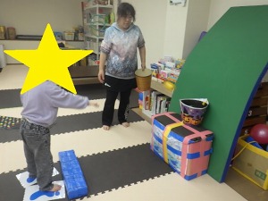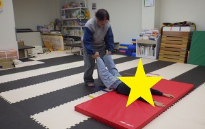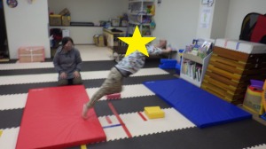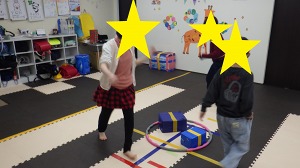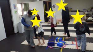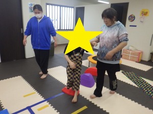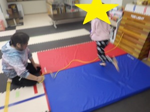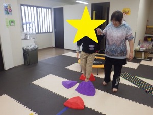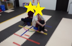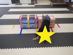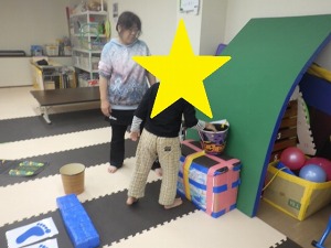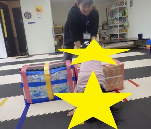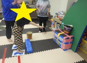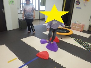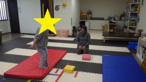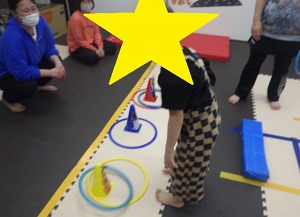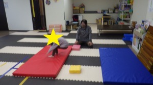 じゃがいもごろごろ(回転感覚)→→バランスブロック(バランス感覚)→→