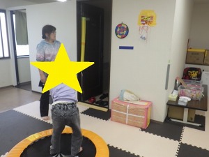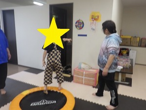 トランポリン→→ブロック両足ジャンプ→→ヒップシェイパー→→