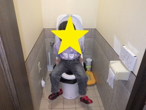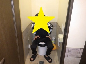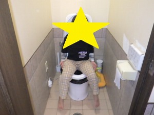 便器に簡易トイレのシートを敷き、その上の便器にそれぞれ座ってもらいました。