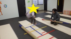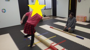 平均台でぽっくりロード→→じゃがいもごろごろ→→バランスブロック→→