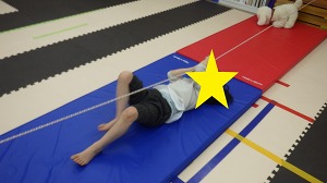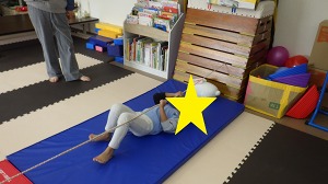 仰向けに寝っ転がりロープを掴んで引っ張るようにしながら前に進みます。