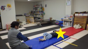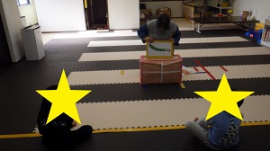 腹筋ローラー(腹筋)→→足つぼマット(足裏の刺激)→→反復横跳び(リズム感・空間認知力等)