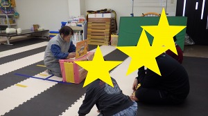 お片付けをして運動遊びの時間です。