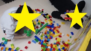 ブロック遊びや風船バドミントンなどを楽しんでいました。