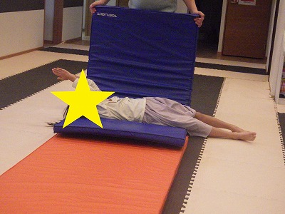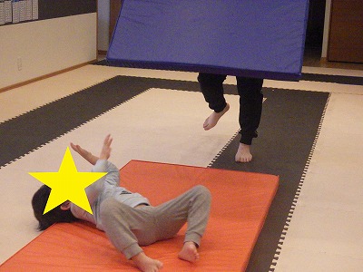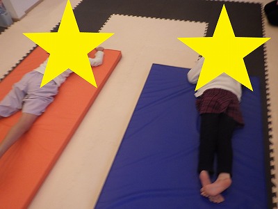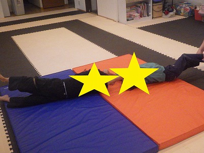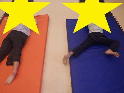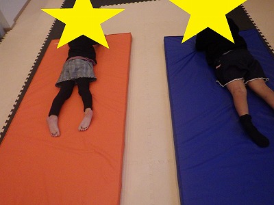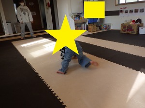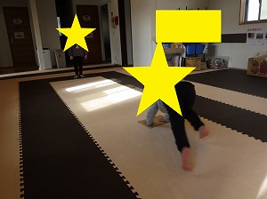 クマさんの雑巾がけではペアで片道をクマさん歩きで進んでいきます。
