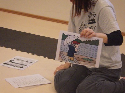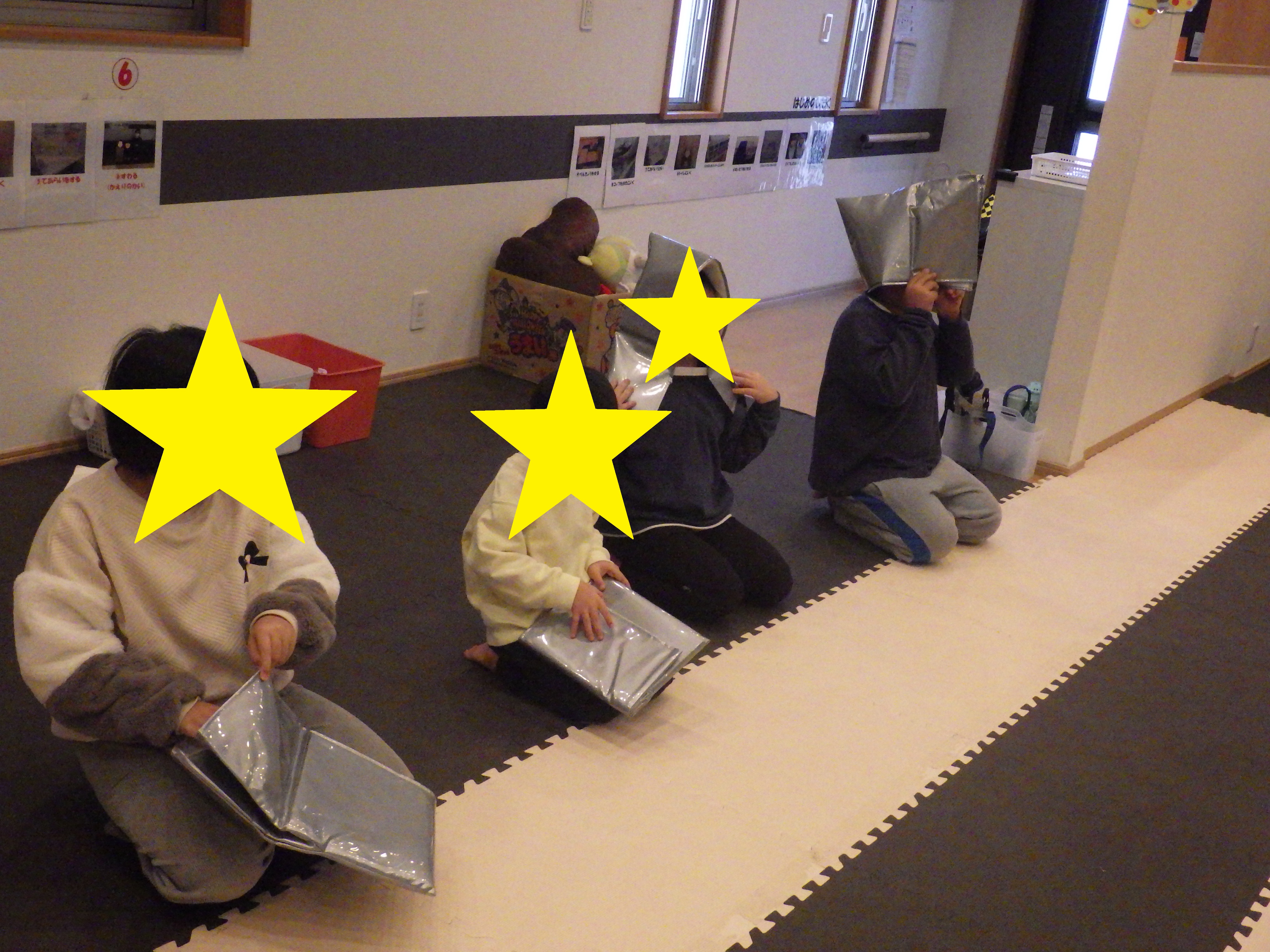 地震火災が起きた際はどうするのか、何で頭を守るのか・・・など、みんなで一緒に考えます。