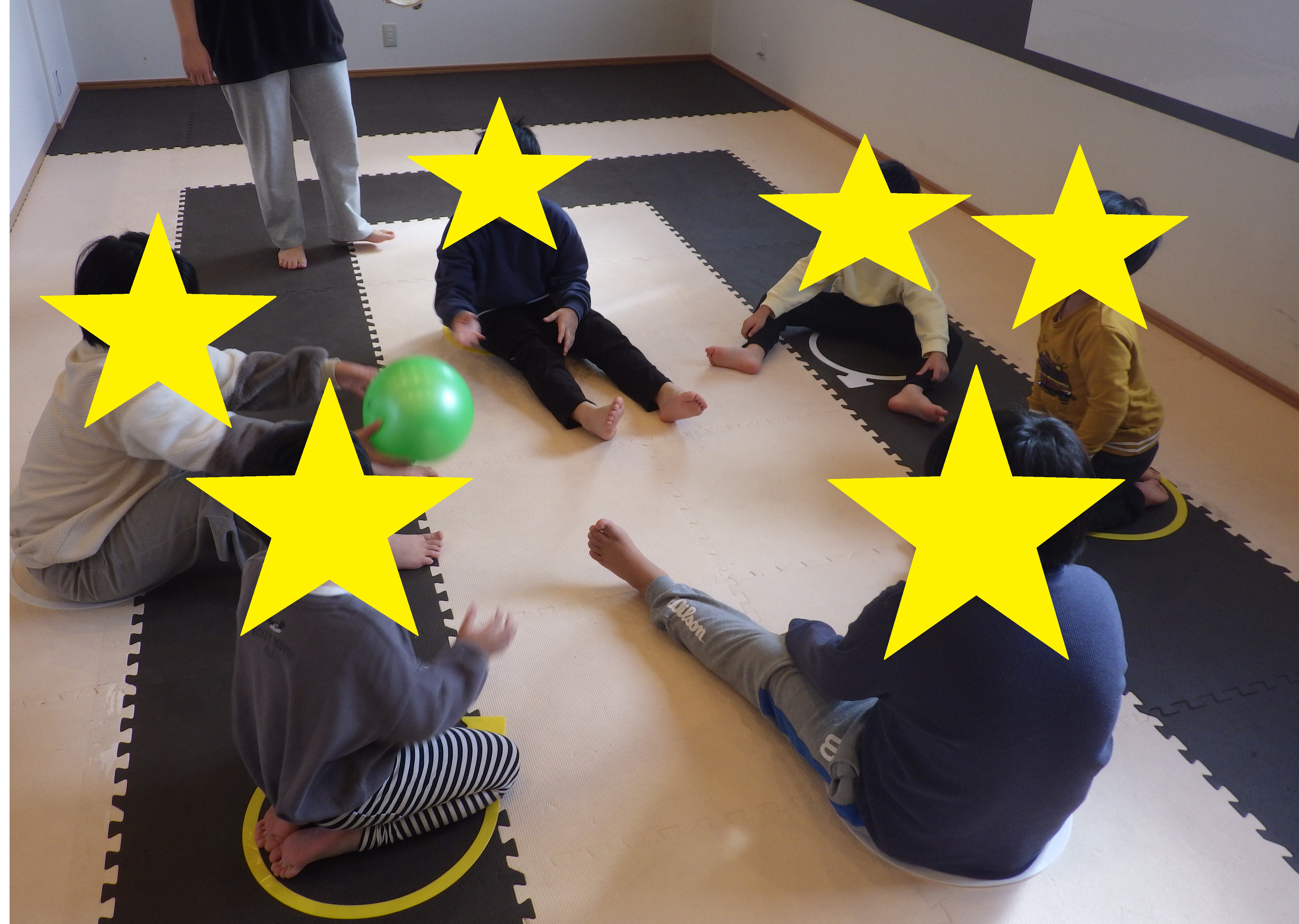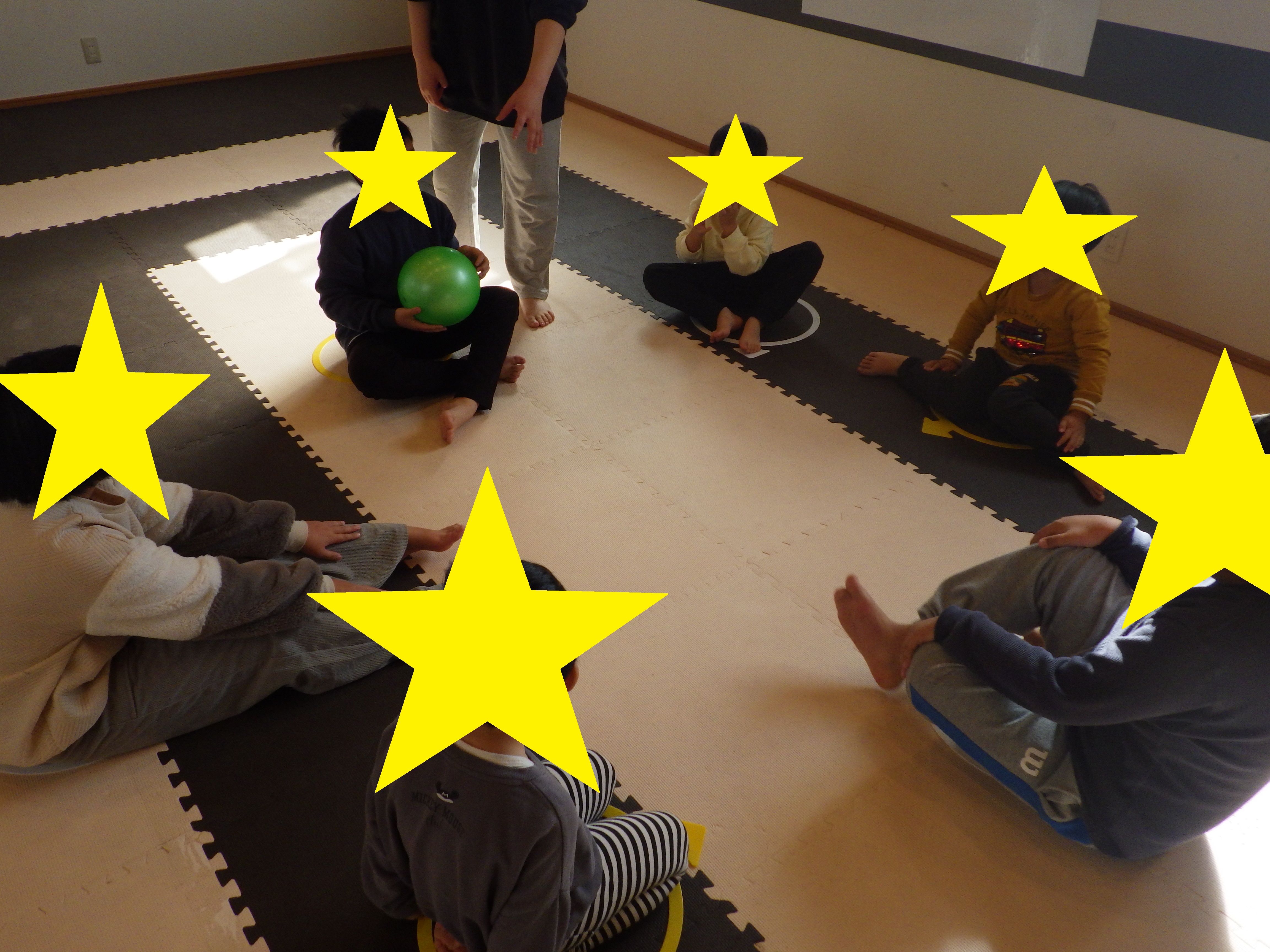 音が止まった時に風船を持っていたお友だちには簡単な問題を出題しました!( ´∀` )
