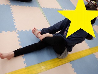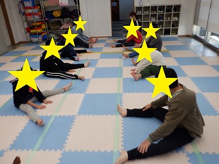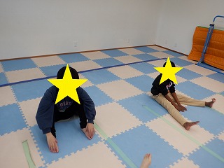 怪我をしないように柔軟体操で体をよくほぐしましょう!