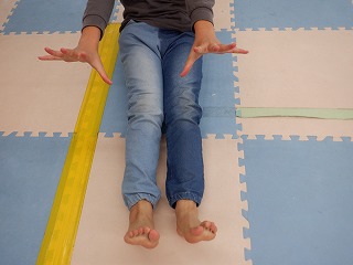 足の力を使ってマットを昇ったり降りたりします。