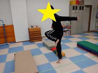 目をつぶって左右それぞれ脚を挙げながら、10秒間姿勢を維持します(^^)/