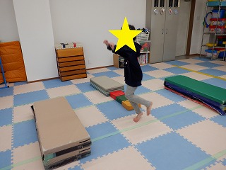 一回ずつ勢いを付けながらジャンプするお友だちや、テンポよく素早くジャンプしていくお友だちもいました(^^♪