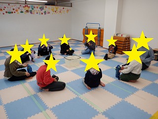 みんな先にフープに入れるよう円の回りを勢いよく走りながら先に空いたフープの中に入る事が出来ました(^^♪