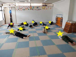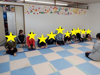 数えている途中でバランスを崩したり、床に足が着いたりしないように気を付けながら、頑張ってかかしを行う事が出来ました(^^♪
