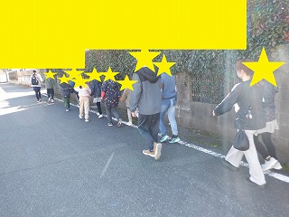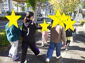 みんな上手に並んで歩き、自転車や歩行者が来たらきちんと避けられました◎