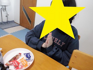 個別に黙食をします。「いただきまぁす♡」