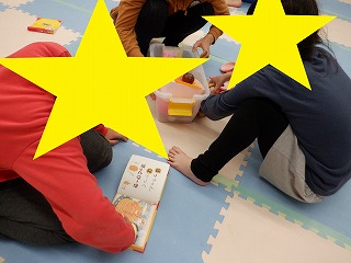自由遊びの時間では、トランプで遊んだりピアノの歌絵本やニューブロックで