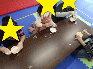 ツリーが完成したお友達からおやつにしましょう!