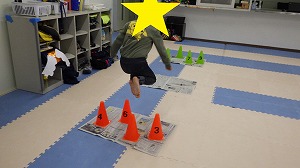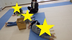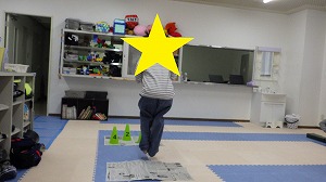 今日はカンガルーさんになって、新聞紙の川を渡りましょう☆