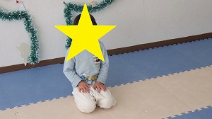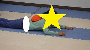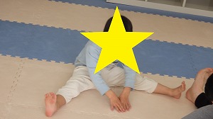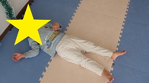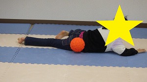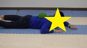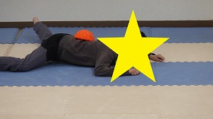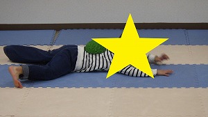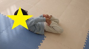 柔軟体操でしっかり体をほぐそう!うつ伏せになって両足首を両手で掴んだら、カメさんに変身(^^)/