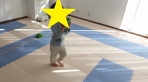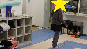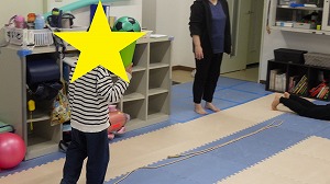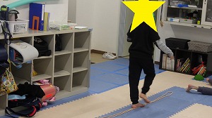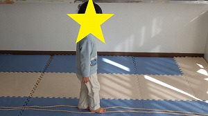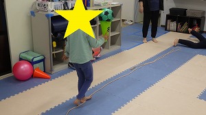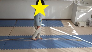 床に真っ直ぐにひかれた綱の上を歩いていきます!!