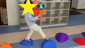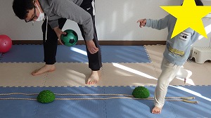 ボールを落とさないように気をつけながら、でこぼこから落ちないように移動できました(^^)/