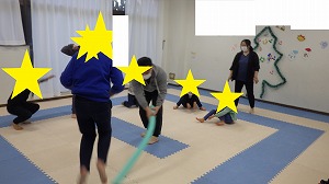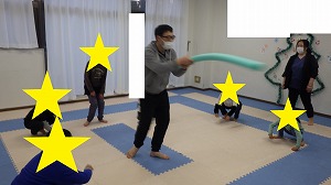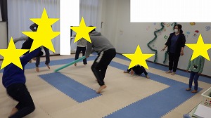みんなスポンジの棒をよく見ながら、上手に動くことが出来ました!!