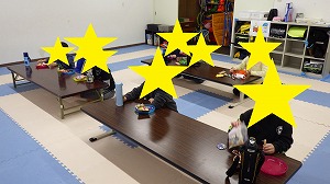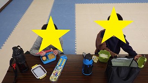 早帰りのお友だちも到着したので、お昼ご飯にしましょう。