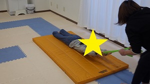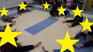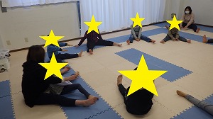 怪我をしないように柔軟体操で体を伸ばしましょう!