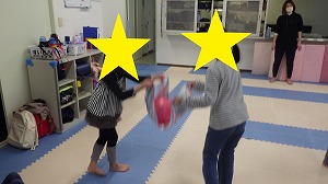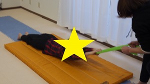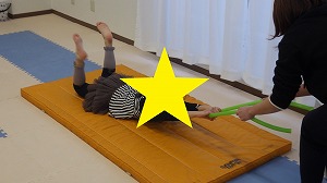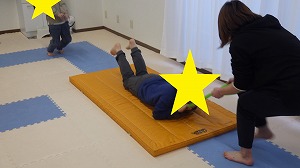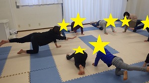 しゃがみながらジャンプで進むという難しいやり方に挑戦してくれたお友だちもいました!