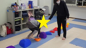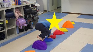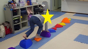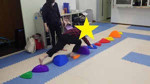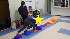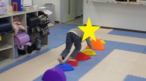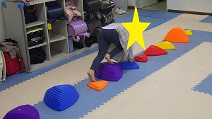 高さの違うストーンの上をクマさん歩きで歩きます。