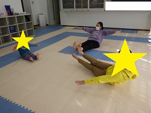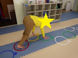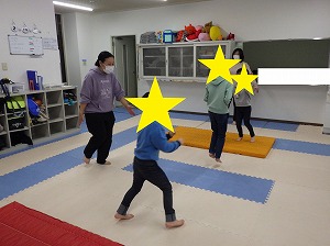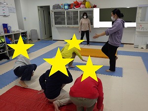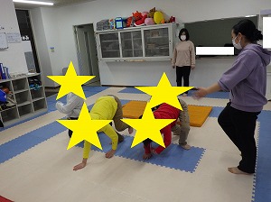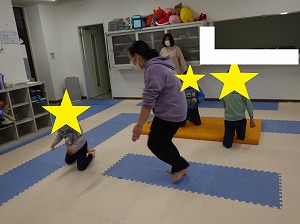 スタート地点から指示された動物で進み、鬼に捕まらないようマットまで逃げましょう☆