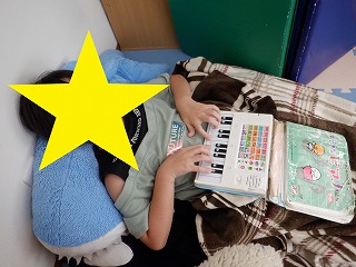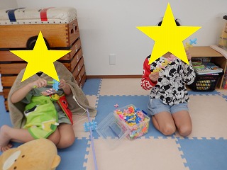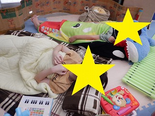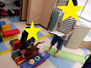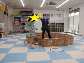 自由遊びの時間では、平均台を使ってバイクや車を作って遊んだりベットを作って