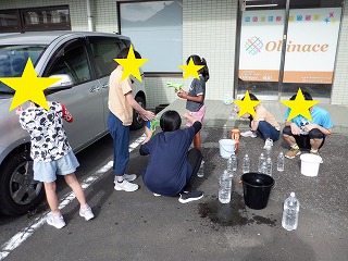 気温が高くなかったので、お水遊びやしゃぼん玉もできてよかったね(^_-)-☆